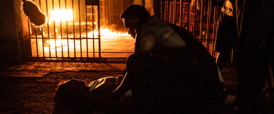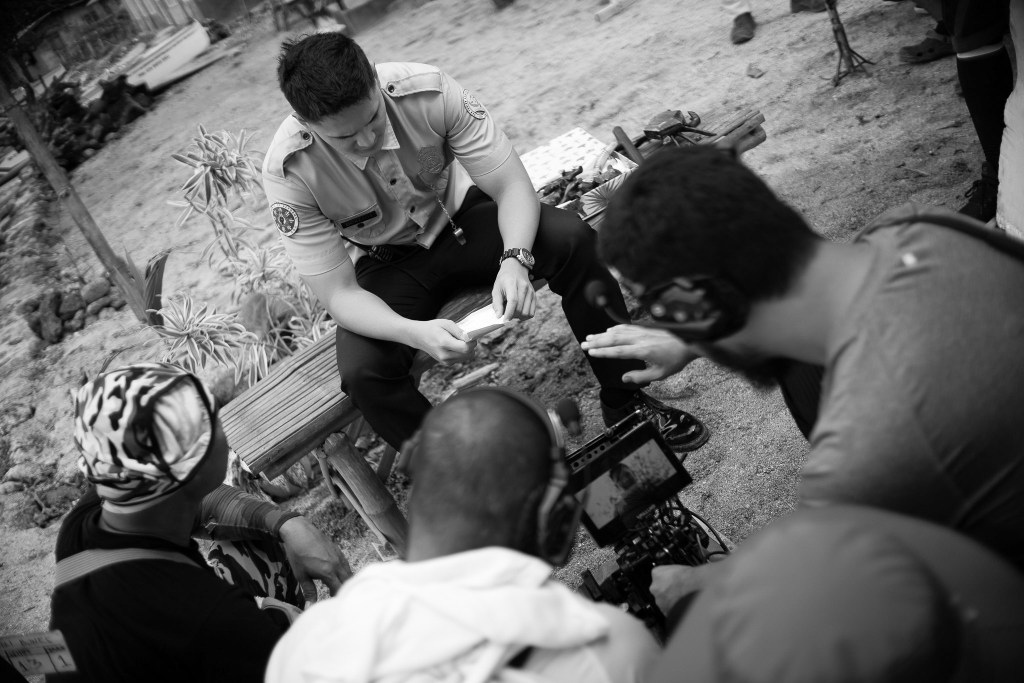 Shooting this sequence as a night-for-night would have required three nights, two grip trucks, and two generators—resources we didn’t have. So we lit it during the day and pumped in 6K and 4K lights for the frontal faces of the actors to control contrast, and relied heavily on color grading in post production. Knowing that Marilen Magsaysay is my colorist even before I shot the scene made me a little more confident. A long-time collaborator in a lot of my films, Marilen helped us craft a convincing night look.